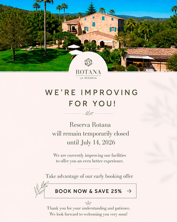 At Reserva Rotana, we offer our most distinguished guests the possibility of arriving directly to our estate through an exclusive private heliport, located in the heart of Mallorca. This infrastructure allows us to guarantee a discreet, agile and smooth arrival, ensuring maximum privacy and comfort from the very first moment.